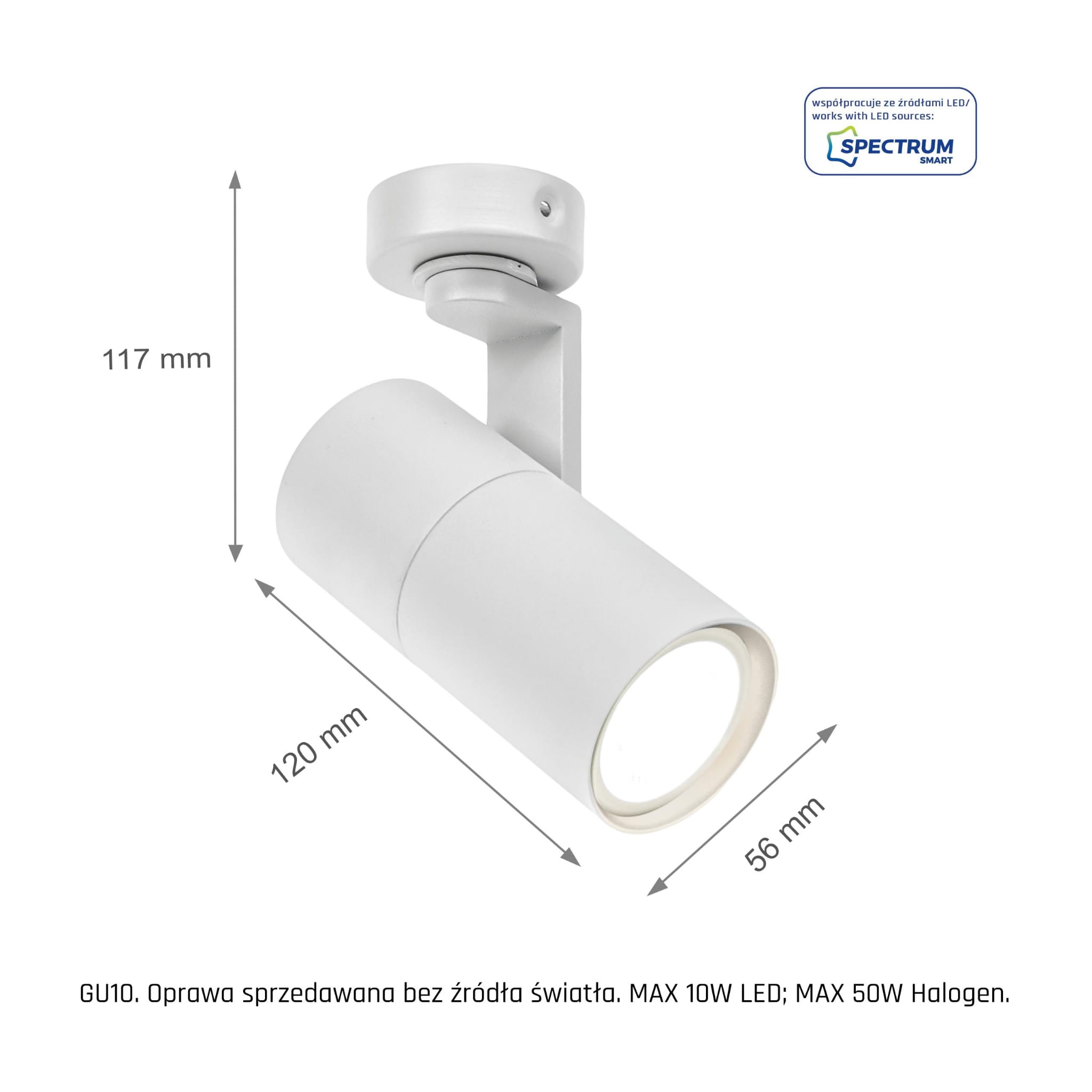Rodzaj źródła światła - Żarówka LED z gwintem GU10 moc maks. 1x10W